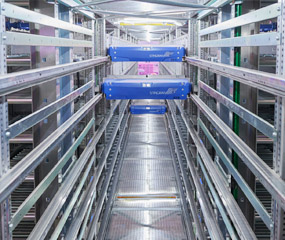 An automated small-parts warehouse is especially designed for light and small products. With the aid of storage and retrieval cranes and shuttles trading units are always readily to hand and quickly at their destination. Intelligently planned and optimally designed, it is possible to build high-performing small-parts warehouses even in halls with a small footprint. Short loading and unloading times, high capacity and a stable construction make a small-parts warehouse an important factor for production reliability.